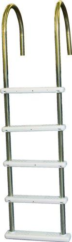 THIS SUPER STRONG LADDER BRINGS THE QUALITY AND STRENGTH OF AN IN-GROUND LADDER TO YOUR ABOVE-GROUND POOL! This top quality ladder makes exiting and entering your pool easier than ever before. Super strong stainless steel rails allow the ladder to easily accommodate 225 lbs. Standard model with polymer non-skid steps will not fade, crack or break. Steps are extra deep for sure footing. Ladder is designed to fit up to 54? deep pools. The base of the ladder pivots to conform to sloping bottoms for super safe contact. Standard Ladder comes with white plastic flanges for secure deck mounting. All stainless steel hardware included. 1-Year Warranty. Classification: LIKE NEW
